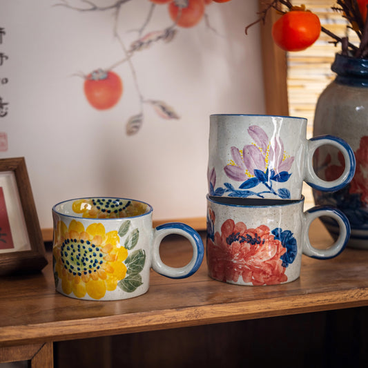 Water Coloured Flora Pattern 450ml Ceramic Tea Cup with Handle/Summer Color Tea/Coffee Cups
