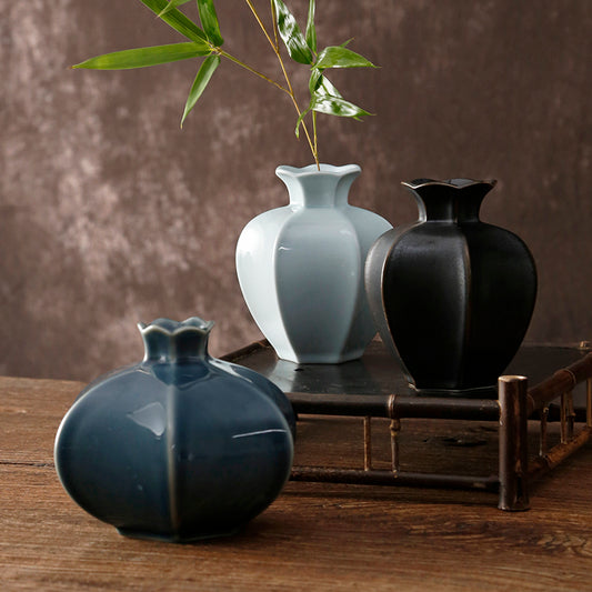 Pomegranate Inspired Table Decorative Ceramic Vase in 3 Classic Glaze/Oriental Zen Flower Vase
