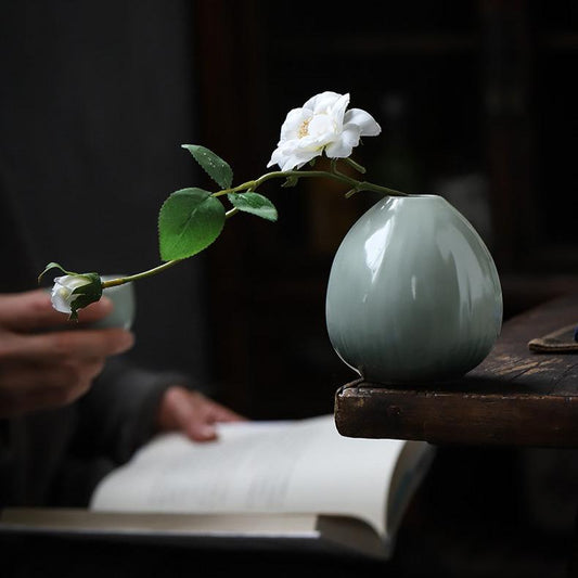 Minimalism Styled Chinese Ceramic Flower Vase in Celadon Green Transmutation Glaze