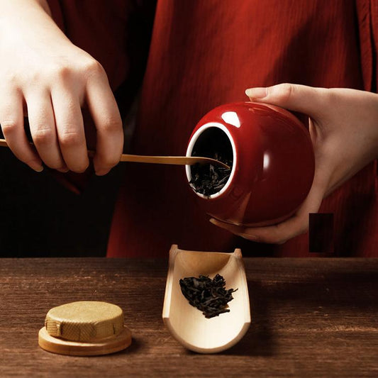 Oriental Ceramic Tea Leaf Storage Jar/Vintage Stayle Royal Color Glazed Crockery