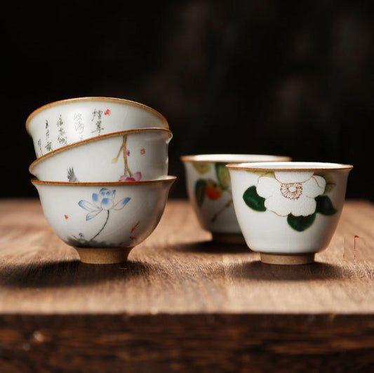 Chinese Ceramic Ru Ware Tea Cup - Flower and Bird Series